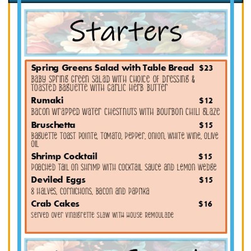 Check out our family style offerings for this special event. Mother's Day Brunch is closed to the public and is by reservation and preorder only