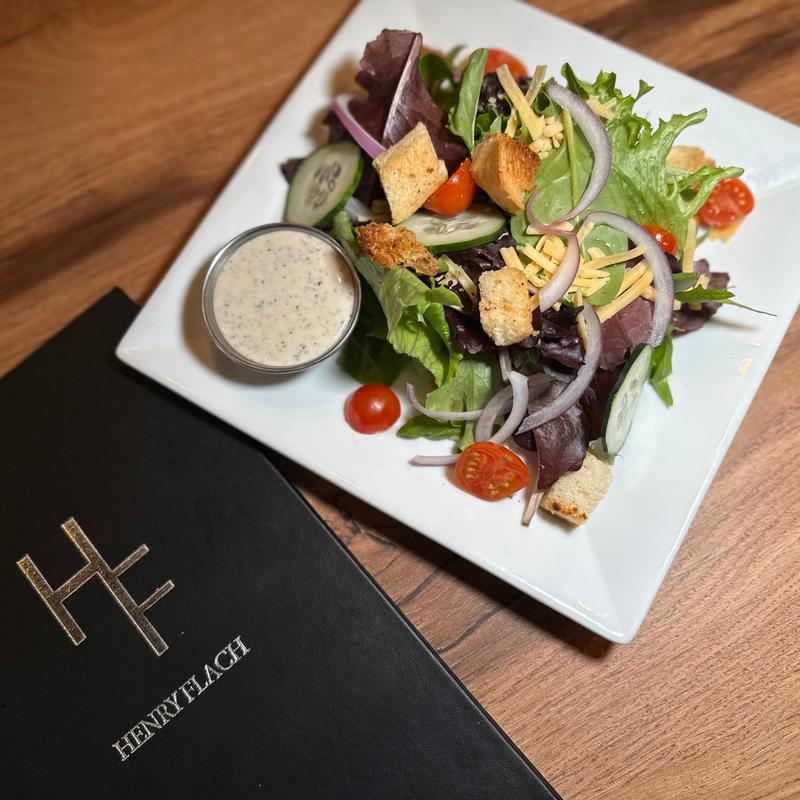 Add Proteins (Choice of HF Classic Seasoning or Blackened) : 6oz Salmon +14 | Chicken Breast +6 | 10oz New York Strip* +16 | 6oz Sirloin* +12 | 8oz Teres Major* +$14 | Shrimp (5)+12 • Dressings: Bleu Cheese, Balsamic Vinaigrette, Champagne Vinaigrette, French, Oil & Vinegar, Parmesan Peppercorn, Ranch, Thousand Island